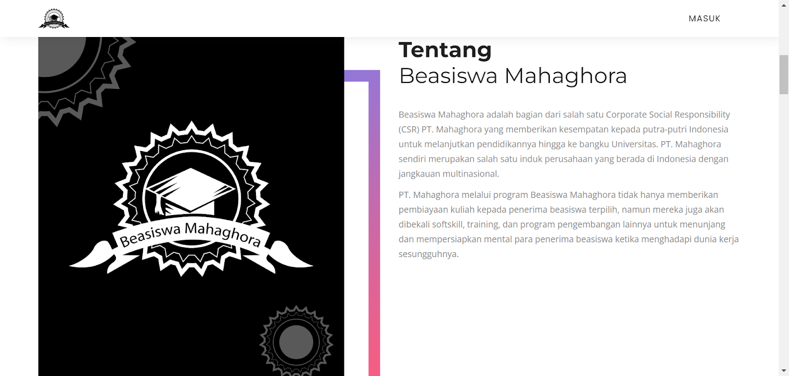 Developed using Laravel, the website used to accommodates the administrative process of the Mahaghora scholarship
